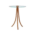 The Sika large side table stands on a curved style, triple legged base that is crafted from iron and given a warm gold finish. Intricately crafted, its thorny stem-like legs are textured and form a large part of the table's distinctive aesthetic."