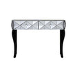 The Soho console table showcases a stunning 3D mirrored glass front with a bold geometric pattern, adding depth and elegance. The two storage drawers adorned with sleek drawer knobs, offers practical storage with a chic touch.
