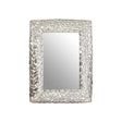 This rectangular wall mirror is framed in an antique nickel finish iron frame with adjoining pebble shapes, creating a unique and stylish design. Its luxurious texture and modern look will make an eye catching focal point in any room.