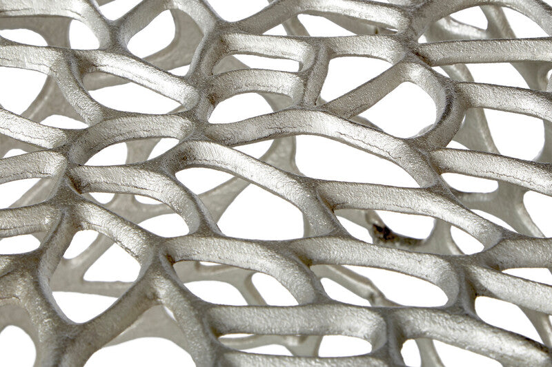 These Templar side tables offer a stylish way of introducing some extra serving space around the home. Made from aluminium, both side tables have a silver-coloured finish, while the lattice construction adds a striking impression and an airy look. This set is perfect for accessorising with different metallic accents or contrasting with natural materials such as wood and stone.