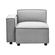 This sofa has hardwood frame with high durability, and its arm filled with soft foam to add comfort and luxe accent. The minimalistic design of this right arm grey fabric sofa has a charming appeal that combines with any interior design.
