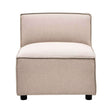 This armless sofa has hardwood frame with high durability, and its base filled with soft foam to offer comfortable sitting experience in luxe accent. The minimalistic design of this armless natural fabric sofa has a charming appeal that combines with any interior design.