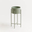 Bring a pop of green in your living room or patio with the Torsa large floor standing planter in soft green finish. The round green planter is standing on a tall sleek metal frame with a matching finish. The crossed design top and bottom section of this modern metal planter adds a touch of contemporary elegance and a hint of geometrical lines to the interior.