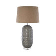 This table lamp has an oblong ceramic body in grey shade that rests above an acrylic plinth. The pattern on the body gives it a shiny appearance while the brown linen shade complements the luxe appeal.