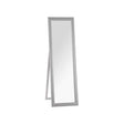 The mirror has a classic design which goes well with contemporary spaces. The wood border has bevelled edges and grey finish. The full length allows generous reflection of light which brightens up the space, making it seem more spacious and airy.