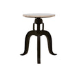 The Vasco bar stool has a seat made from tactile white marble. Its height can be raised or lowered by spinning the marble and letting the industrial-style adjustment do its work. The three legs are made from iron and have a black finish that complements the marble. Their flowing cabriole design softens the look.