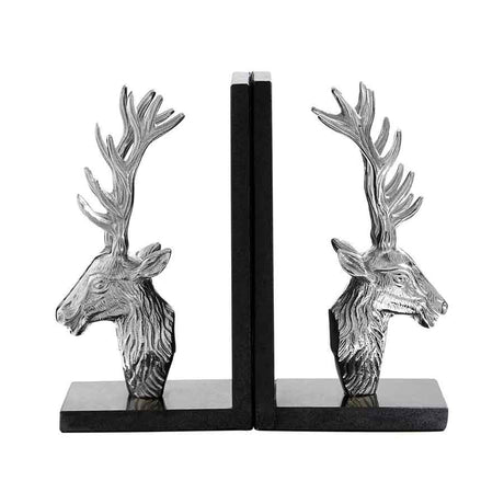 Kinsley Set of 2 Stag Bookends with Marble Base