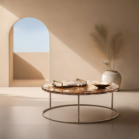 Alvaro Round Side Table with Rose Gold Legs and Black Glass Top