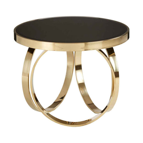 Alana Round Coffee Table with Gold Frame and Black Glass