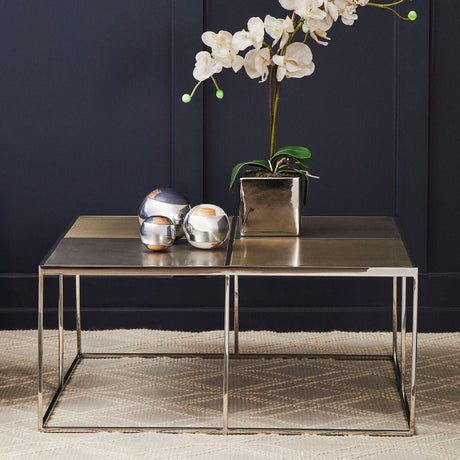 Moda Ivory White Fuax Marble Coffee Table With Stainless Steel Base