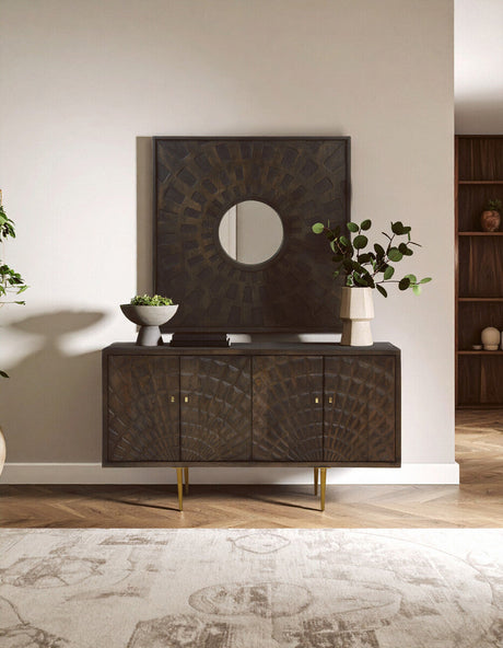 Walsa Black Finish Mango Wood Column Detail Round Side Table