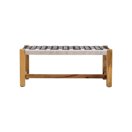 Satna Jute Black And White Design Mango Wood Frame Bench