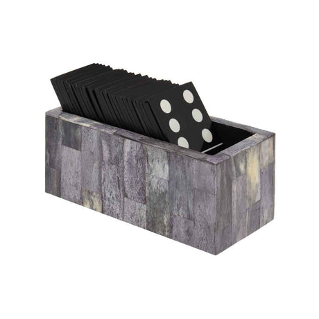 Churchill Games Grey Bone Domino Set with Black Dominoes