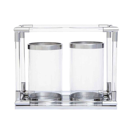 Lucita Double Silver Steel And Acrylic Candle Holder
