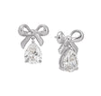 This elegant earring style feature a hand crafted ribbon style bow that holds onto a radiant teardrop lab grown cubic zirconia.