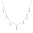Make a striking impact in this delicate silver chain necklace featuring 7 lightning bolt shaped charms detailed with pave crystals. Perfect for layering!