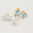 Intricately handcrafted from 18ct Gold Plated Sterling Silver, noble Baroque Pearls and a statement Blue Topaz, the new earrings are notable for their grandeur. The sumptuous precious materials and tudor-esque design influences evoke a regal quality, effortlessly elevating any outfit.