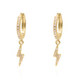 Make a striking impact with these delicate lightning earrings featuring pave encrusted huggie hoops with sparkling lightning bolt shaped charms. Perfect for creating your ear stack!