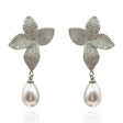 Cubic Zirconium Pave and Pearl Drop Clip on Earrings