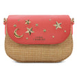 Elena Star Studded Rattan Handbag - Coral & Gold