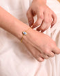 This handmade Evil Eye Bracelet is crafted from a lustrous mother of pearl with 22ct gold plating. Its intricate design provides a uniquely stylish look, while its protective symbolism ensures well-being. An essential piece of jewelry for any stylish look.