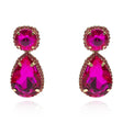 Crafted for elegance and comfort, these earrings feature fuschia-colored pear-shaped drops adorned with sparkling pave stones. Their lightweight design ensures they are easy to wear while making a sparkling statement as you enter any room.