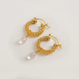 Gold Weave Mini Hoops With Rose Quartz Charm
