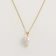 Bring out your inner queen with our charming large Baroque Pearl on 18ct Gold Plated Sterling Silver Necklace from our unique gold jewellery collection of pearl necklaces. Handcrafted in beautiful 18ct Gold Plated Sterling Silver. This beautiful bridal necklace is for a modern wedding or anyone who loves pearl jewellery.