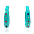 Crafted for impact, these hoops feature vibrant turquoise resin accented with dazzling multi-color crystals and gleaming gold balls. The combination of bold design and lightweight construction ensures all-day comfort without compromising on style.