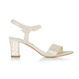 Part of our Iconic collection of contemporary jewelled heels, Martina Midi is a luxurious champagne shimmer suede shoe featuring the Freya Rose signature jewelled pearl heels, a low block heel shoe handcrafted with genuine mother of pearl.