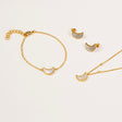 Jewellery set: Moon-inspired necklace, earrings, and bracelet. Radiate elegance with lunar allure.