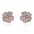 Crafted to perfection, these earrings boast a stunning three-dimensional design, with crystal baguettes encircling vibrant pink sapphire center stones. The intricate detailing and shimmering accents add a touch of elegance and sophistication to any ensemble.