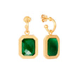 Add a regal touch to your style with these Rectangular Emerald Green Crystal Hoops. The deep green hue of the crystals radiates elegance, making these 22ct gold-plated brass earrings a timeless statement piece. They will enhance your look and elevate any occasion, from casual outings to formal celebrations.