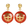 These exquisite Drop earrings are part of Melange collection. They feature hand carved and polished cabochons of the finest natural Red Carnelian The gemstones are set within a beautifully crafted gold filigree design.
