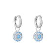 These earrings are crafted from rhodium-plated recycled sterling silver, and feature aquamarine gemstones. The aquamarine gemstones we use are lab-grown instead of mined.