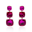 Add a touch of elegance to any outfit with these exquisite Fuschia triple cushion cut crystal earrings. Featuring a trio of brilliantly cut crystals, these earrings are designed to shine whether you’re pairing them with a casual white t-shirt or elevating your look for a gala affair. Their timeless design and ease of wear make them a versatile accessory, perfect for effortlessly enhancing your wardrobe with a hint of sophistication