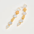 Unveil the enchanting Warrioress Armour Drops in Gold by Freya Rose, a celebration of celestial tales. Handcrafted with genuine mother of pearl and 18ct gold-plated sterling silver, these earrings feature bold geometric designs inspired by ancient storytelling. The captivating organic tones echo Freya's commitment to slow fashion and responsible sourcing, creating a unique piece that preserves artisanal craftsmanship in a modern world.