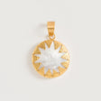 Embrace the power of a warrior by wearing our 18ct Gold-Plated Sterling Silver Warrioress Medallion Pendant close to your heart. This alluring Mother of Pearl charm features a distinctive sun-raise like design, exuding a boldness to serve as a reminder of self-confidence and empowerment.