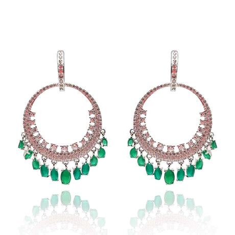 Rhodium Plated Cubic Zirconium Emerald and Diamond Drops