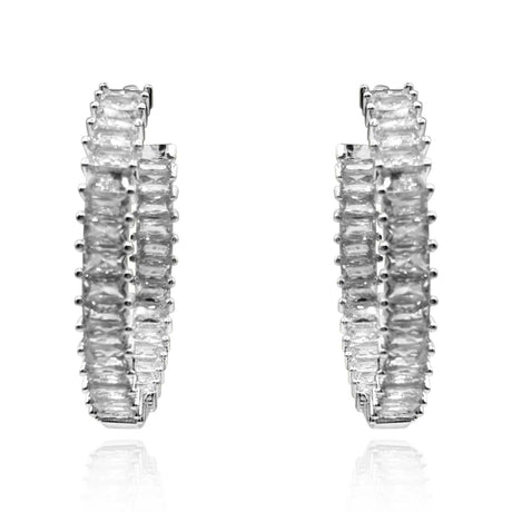 Large Gold Plated Cubic Zirconium Baguette Hoop Earrings