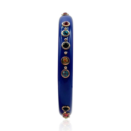 Navy Resin Bangle With Coral Glass Stones in Gold-Plated Brass Settings