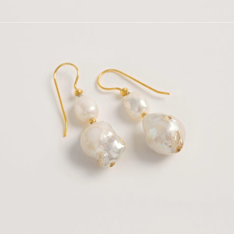 Emma Baroque White Glass Pearl Drop Pierced Earrings