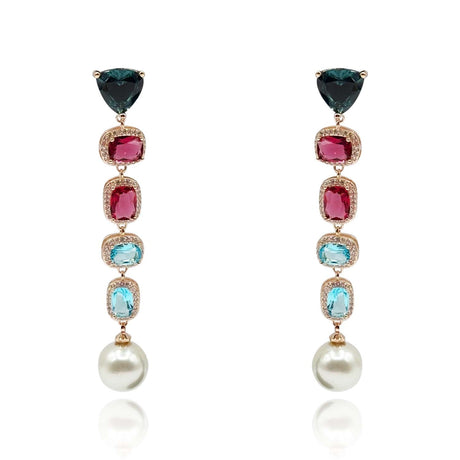 Multi Color and Pearl Drop Hanging Earrings