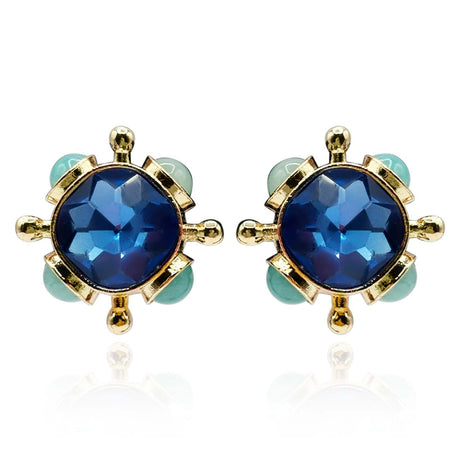 Sapphire and Blue Chalcedony Sputnik Clip on Earrings