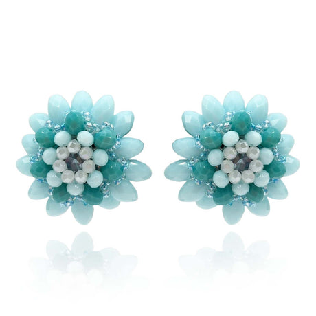 Light Blue Button Faceted Glass Bead Clip on Earring