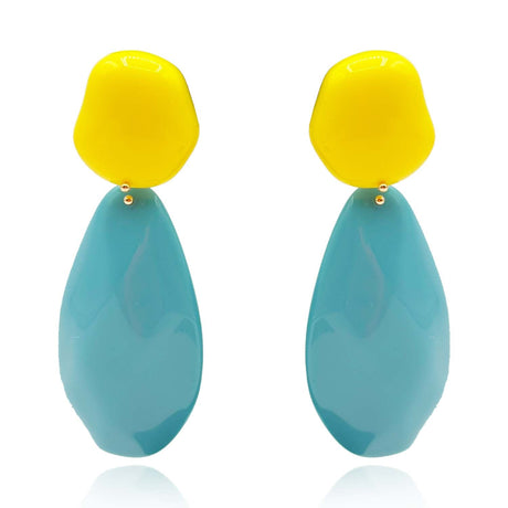 Yellow and Turquoise Pebble Resin Earrings