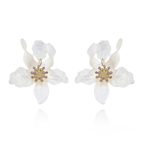White Floral Resin Drop Earrings