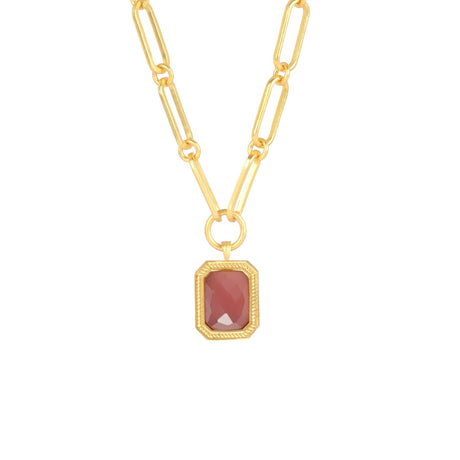 Paperclip Chain Rectangular Amber Crystal Necklace