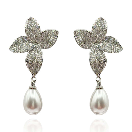 Cubic Zirconium Pave and Pearl Drop Clip on Earrings