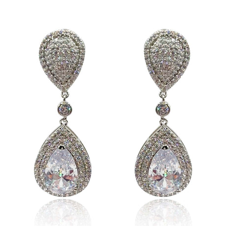 Cubic Zirconium Pear Shape Drop Clip on Earrings